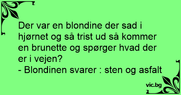 Der var en blondine der sad i hjørnet og så trist ud så kommer en brunette og spørger hvad der er i vejen?