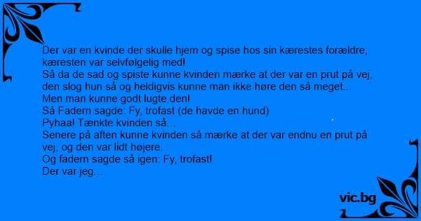 Lidt senere på aften kunne kvinden så mærke at der var endnu en prut på vej... Og den slog hun så også, og den var højere end de andre. Faderen sagde igen: Fy trofast!