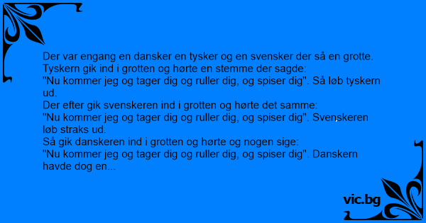 Der var engang en dansker en tysker og en svensker der så en grotte.