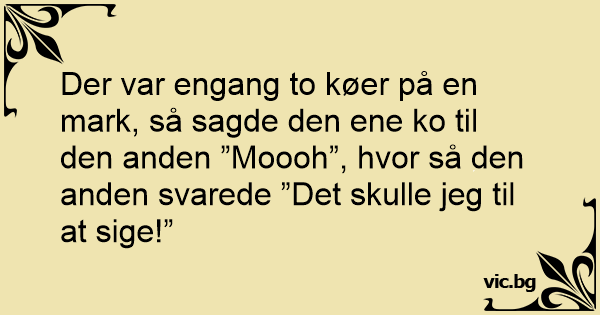 Der var engang to køer på en mark, så sagde den ene ko til den anden ”Moooh”, hvor så den anden svarede ”Det skulle jeg til at sige!”