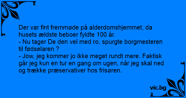 - Jow, jeg kommer jo ikke meget rundt mere. Faktisk går jeg kun en tur en gang om ugen, når jeg skal ned og trække præservativer hos frisøren.