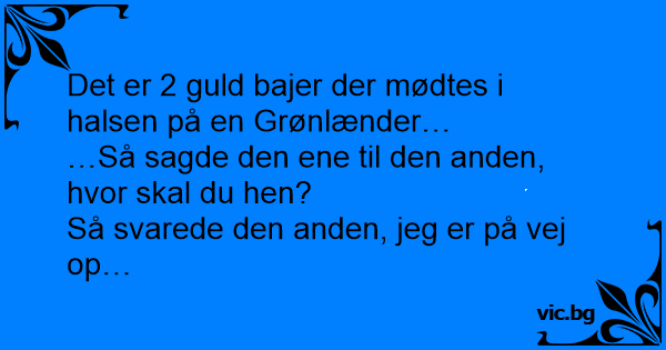 Det er 2 guld bajer der mødtes i halsen på en Grønlænder…