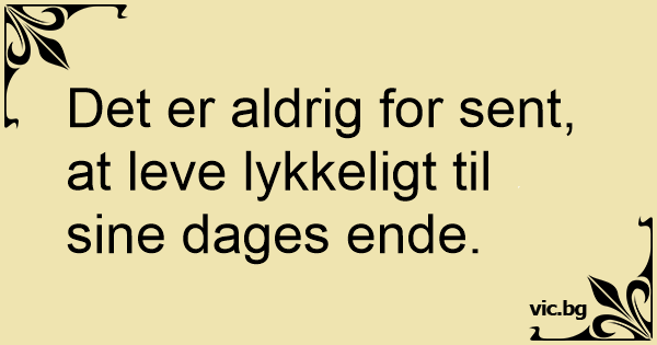 Det er aldrig for sent, at leve lykkeligt til sine dages ende.