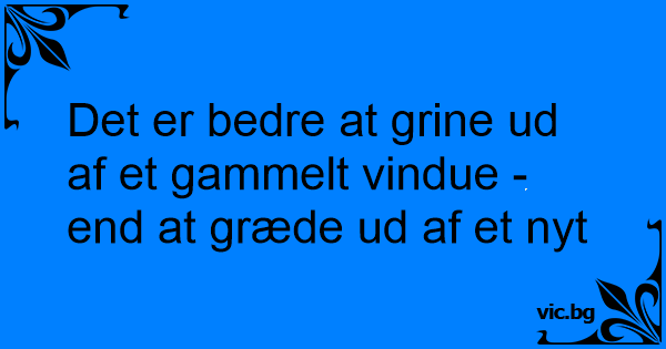 Det er bedre at grine ud af et gammelt vindue - end at græde ud af et nyt