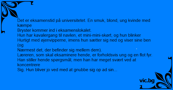 Læreren, som skal eksaminere hende, er forholdsvis ung og en flot fyr.