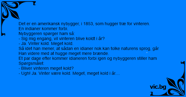 - Fordi der er gammel indian ordsprog siger: Når hvid mand hugge meget