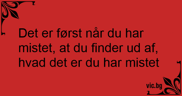Det er først når du har mistet, at du finder ud af, hvad det er du har mistet
