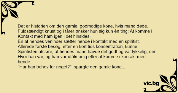 "Har han behov for noget?", spurgte den gamle kone.