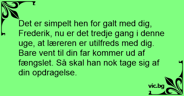 Det er simpelt hen for galt med dig, Frederik, nu er det tredje gang i denne uge, at læreren er utilfreds med dig.