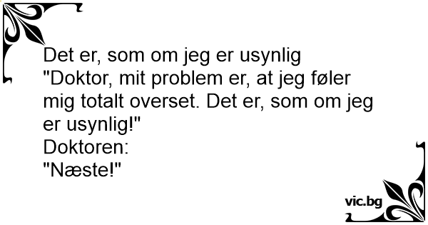 "Doktor, mit problem er, at jeg føler mig totalt overset. Det er, som om jeg er usynlig!"