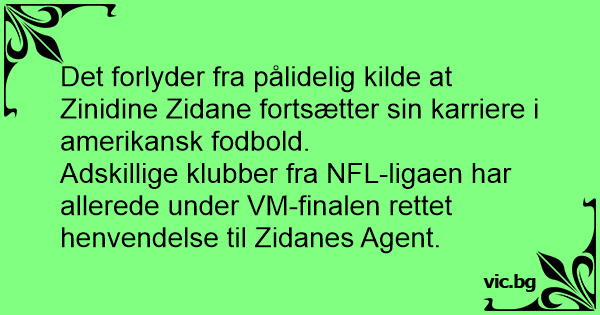 Det forlyder fra pålidelig kilde at Zinidine Zidane fortsætter sin karriere i amerikansk fodbold.