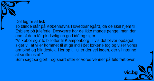 To blinde står på Københavns Hovedbanegård, da de skal hjem til Esbjerg på juleferie. Desværre har de ikke mange penge; men den ene af dem får pludselig en god idé og siger: