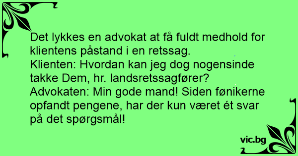 Advokaten: Min gode mand! Siden fønikerne opfandt pengene, har der kun været ét svar på det spørgsmål!