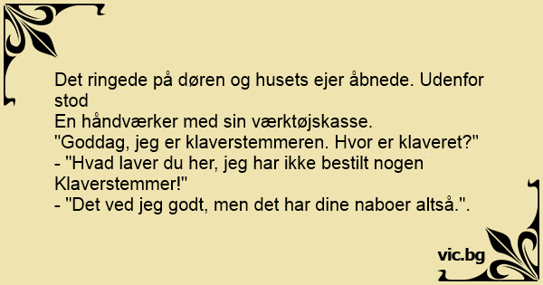 "Goddag, jeg er klaverstemmeren. Hvor er klaveret?"