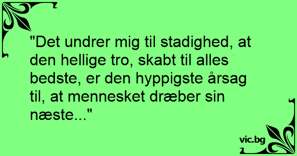 "Det undrer mig til stadighed, at den hellige tro, skabt til alles bedste, er den hyppigste årsag til, at mennesket dræber sin næste..."