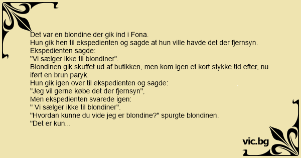 "Det er kun en blondine der kan pege på en radio og sige det er et tv" svarede ekspedienten tørt.