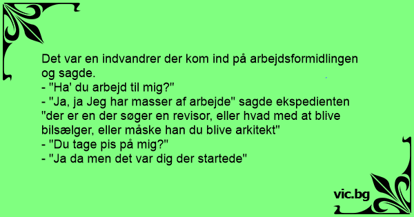 - "Ja, ja Jeg har masser af arbejde" sagde ekspedienten "der er en der søger en revisor, eller hvad med at blive bilsælger, eller måske han du blive arkitekt"