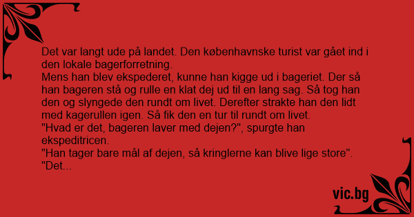 "Hvad er det, bageren laver med dejen?", spurgte han ekspeditricen.
