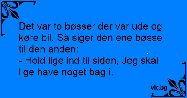 Det var to bøsser der var ude og køre bil. Så siger den ene bøsse til den anden: