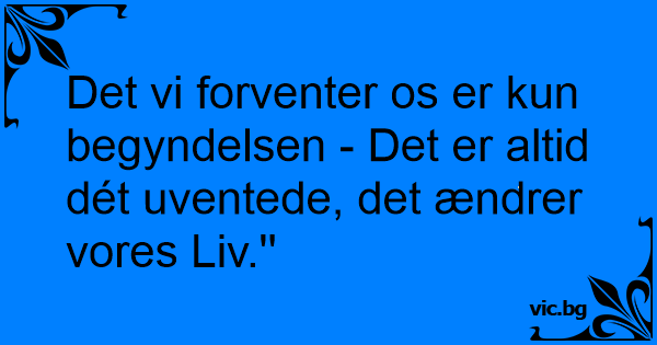 Det vi forventer os er kun begyndelsen - Det er altid dét uventede, det ændrer vores Liv.''