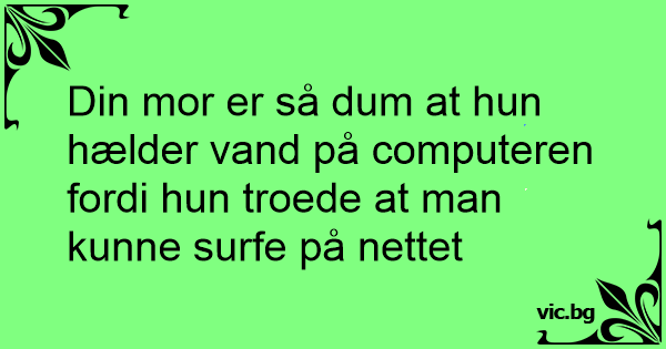 Din mor er så dum at hun hælder vand på computeren fordi hun troede at man kunne surfe på nettet