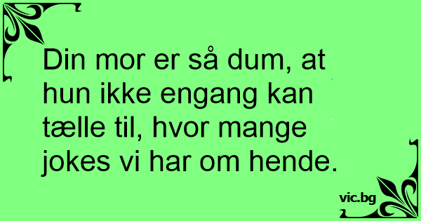 Din mor er så dum, at hun ikke engang kan tælle til, hvor mange jokes vi har om hende.
