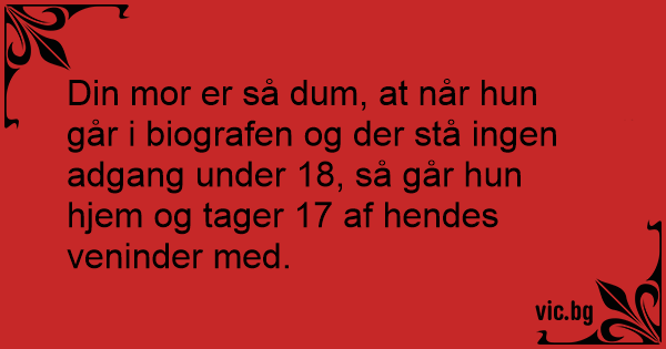 Din mor er så dum, at når hun går i biografen og der stå ingen adgang under 18, så går hun hjem og tager 17 af hendes veninder med.