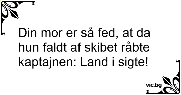 Din mor er så fed, at da hun faldt af skibet råbte kaptajnen: Land i sigte!