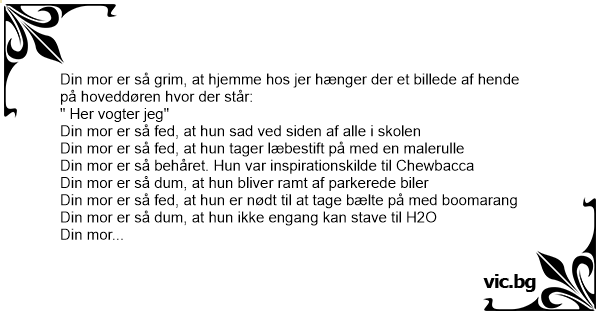 Din mor er så grim, at hjemme hos jer hænger der et billede af hende på hoveddøren hvor der står: