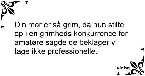 Din mor er så grim, da hun stilte op i en grimheds konkurrence for amatøre sagde de beklager vi tage ikke professionelle.