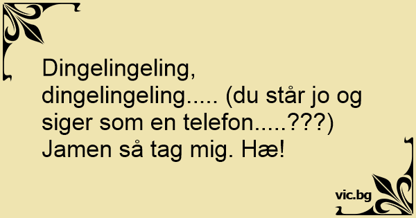 Dingelingeling, dingelingeling..... (du står jo og siger som en telefon.....???) Jamen så tag mig. Hæ!