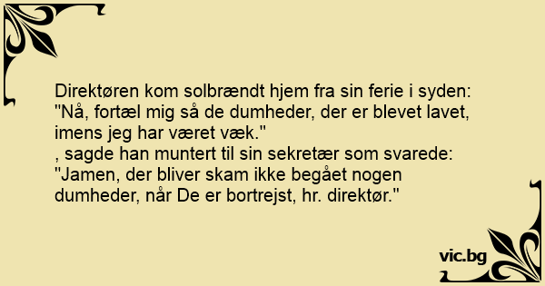 "Jamen, der bliver skam ikke begået nogen dumheder, når De er bortrejst, hr. direktør."