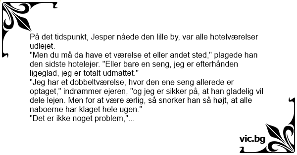 "Det er ikke noget problem," Siger den trætte rejsende, "jeg tager værelset."