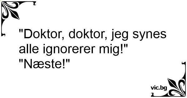 – Doktor, jeg har et problem. Ingen legger merke til meg. – Værsågod neste.