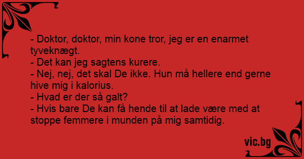 - Doktor, doktor, min kone tror, jeg er en enarmet tyveknægt.