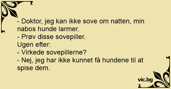 - Doktor, jeg kan ikke sove om natten, min nabos hunde larmer.
