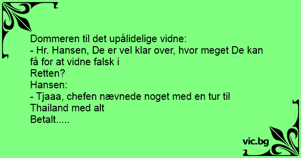 - Hr. Hansen, De er vel klar over, hvor meget De kan få for at vidne falsk i