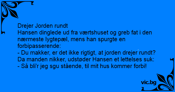 Hansen dinglede ud fra værtshuset og greb fат i den nærmeste lygtepæl, mens han spurgte en forbipasserende: