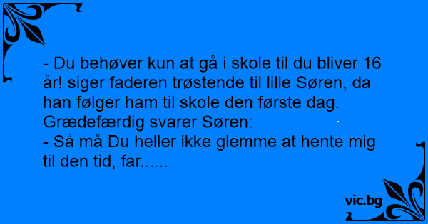 - Du behøver kun at gå i skole til du bliver 16 år! siger faderen trøstende til lille Søren, da han følger ham til skole den første dag.