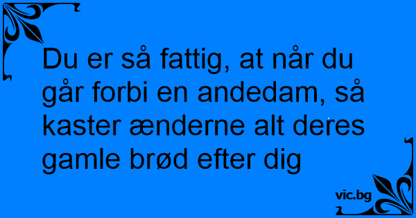 Du er så fattig, at når du går forbi en andedam, så kaster ænderne alt deres gamle brød efter dig