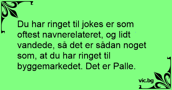 Du har ringet til jokes er som oftest navnerelateret, og lidt vandede, så det er sådan noget som, at du har ringet til byggemarkedet. Det er Раllе.