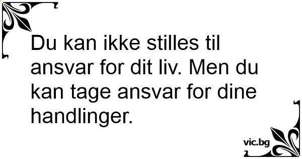 Du kan ikke stilles til ansvar for dit liv. Men du kan tage ansvar for dine handlinger.