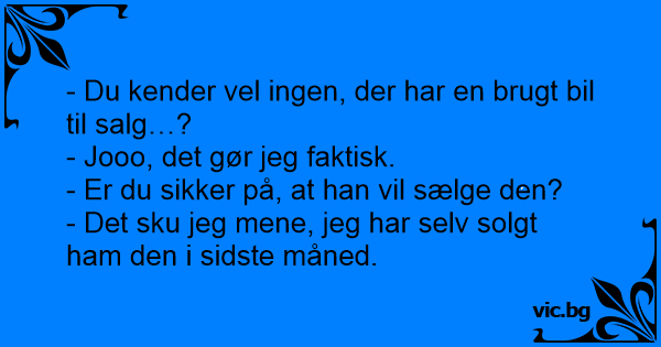 - Du kender vel ingen, der har en brugt bil til salg…?