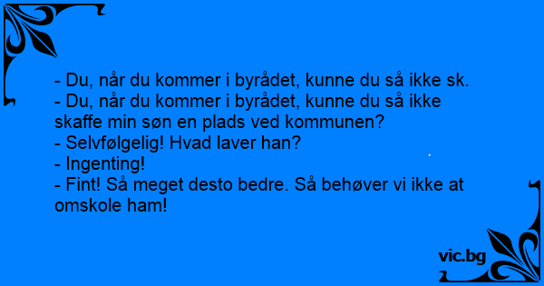 - Du, når du kommer i byrådet, kunne du så ikke skaffe min søn en plads ved kommunen?