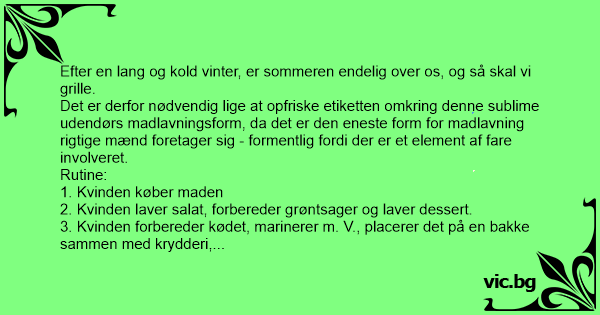 Det er derfor nødvendig lige at opfriske etiketten omkring denne sublime udendørs madlavningsform, da det er den eneste form for madlavning rigtige mænd foretager sig - formentlig fordi der er et element af fare involveret.