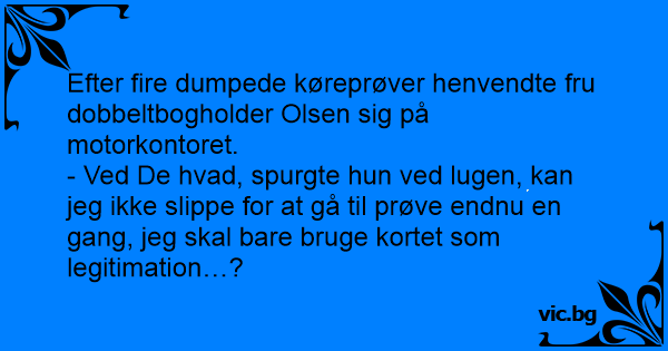 Efter fire dumpede køreprøver henvendte fru dobbeltbogholder Olsen sig på motorkontoret.