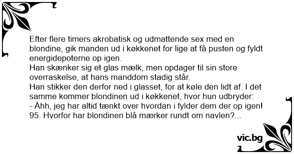 95. Hvorfor har blondinen blå mærker rundt om navlen?