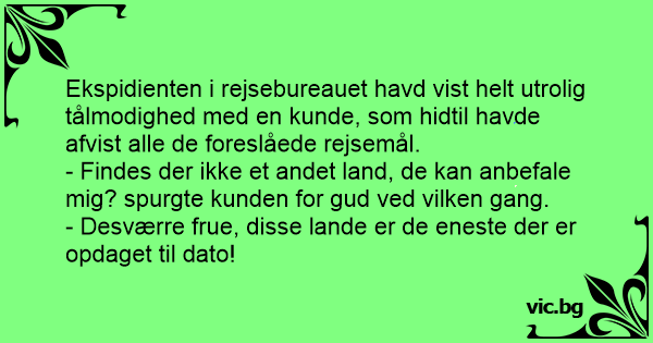 - Findes der ikke et andet land, de kan anbefale mig? spurgte kunden for gud ved vilken gang.