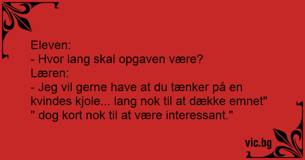 - Jeg vil gerne have at du tænker på en kvindes kjole... lang nok til at dække emnet"