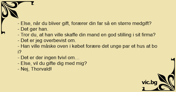 - Else, når du bliver gift, forærer din far så en større medgift?